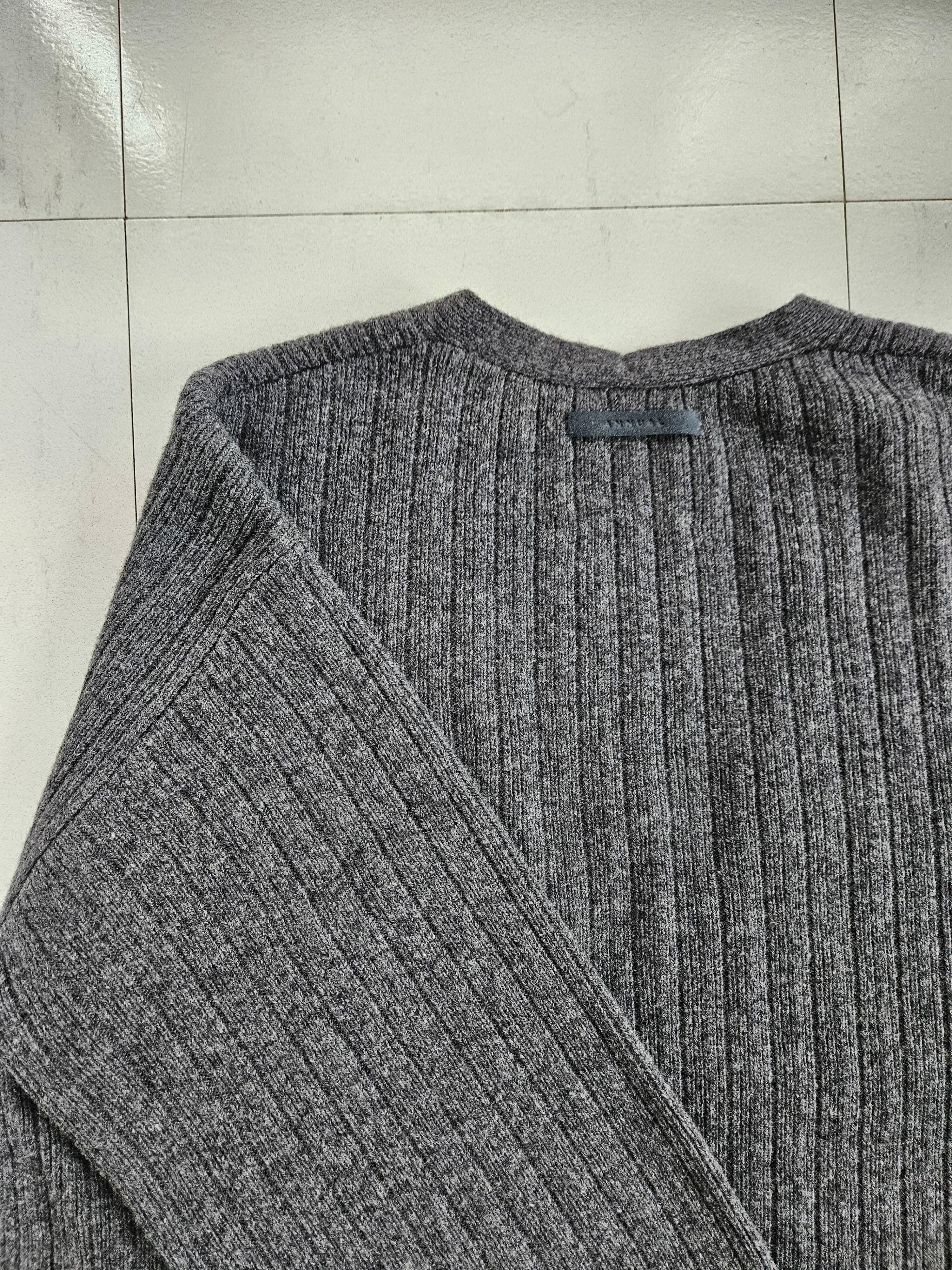 柔らかなウールを贅沢に使用した一枚で、Vネックデザインが首元を美しく見せます。ニュージーランドメリノの膨張らみと特殊な編み組織により立体的なニットに仕上がっています。