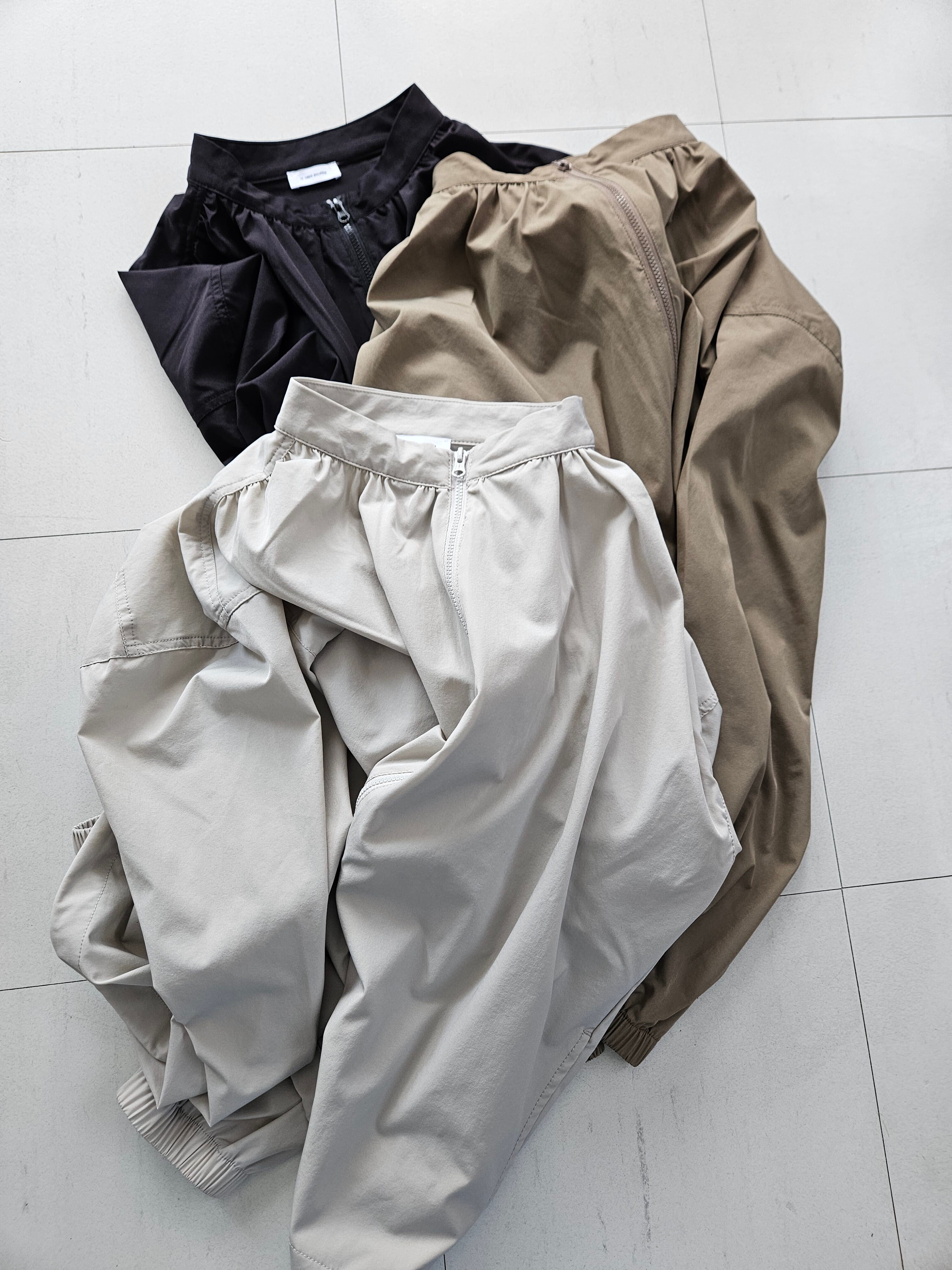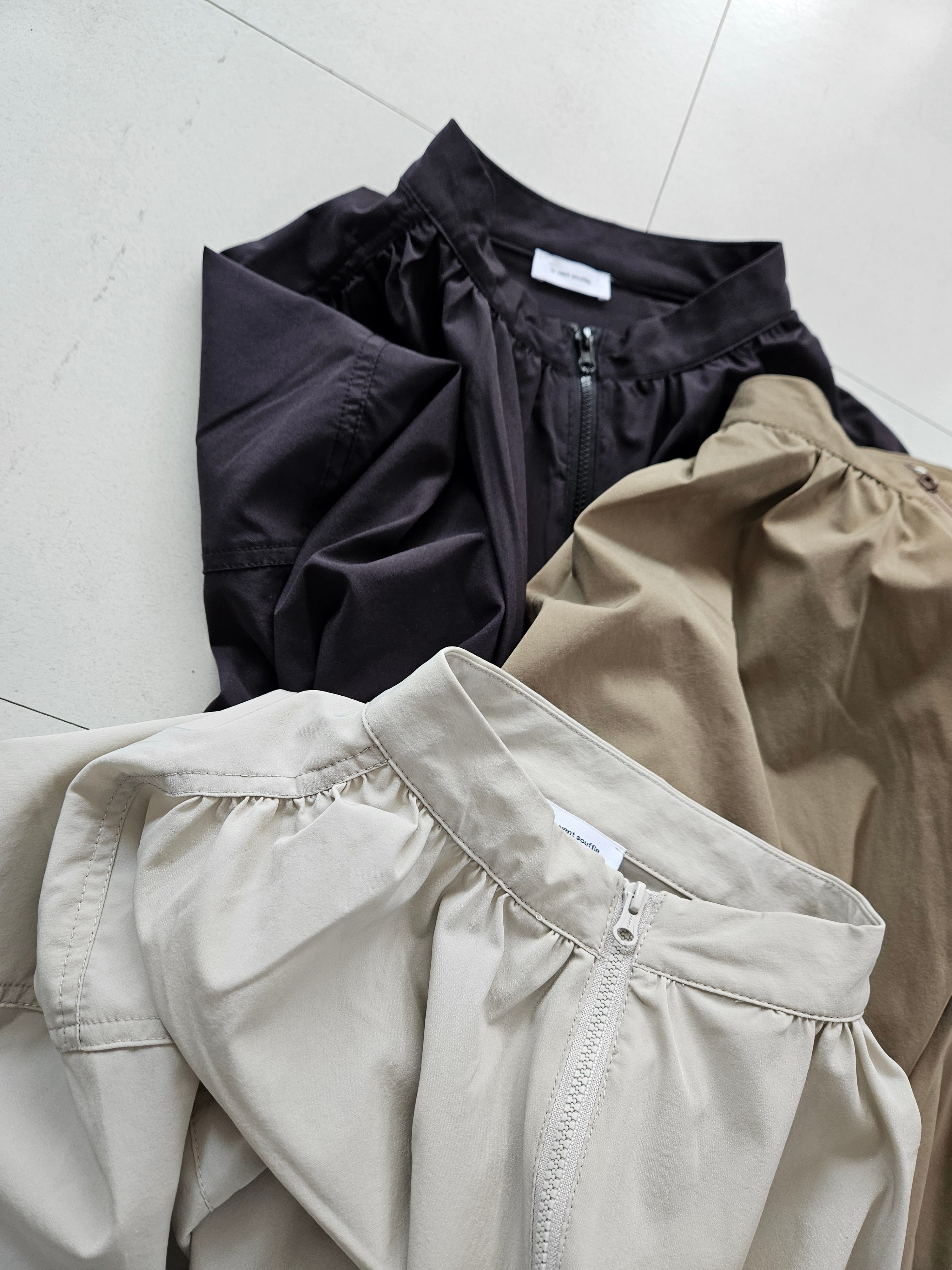 ストレッチ性のある軽やかなエアリーストレッチナイロンを使用したスタンドダブルZIPブルゾンです。