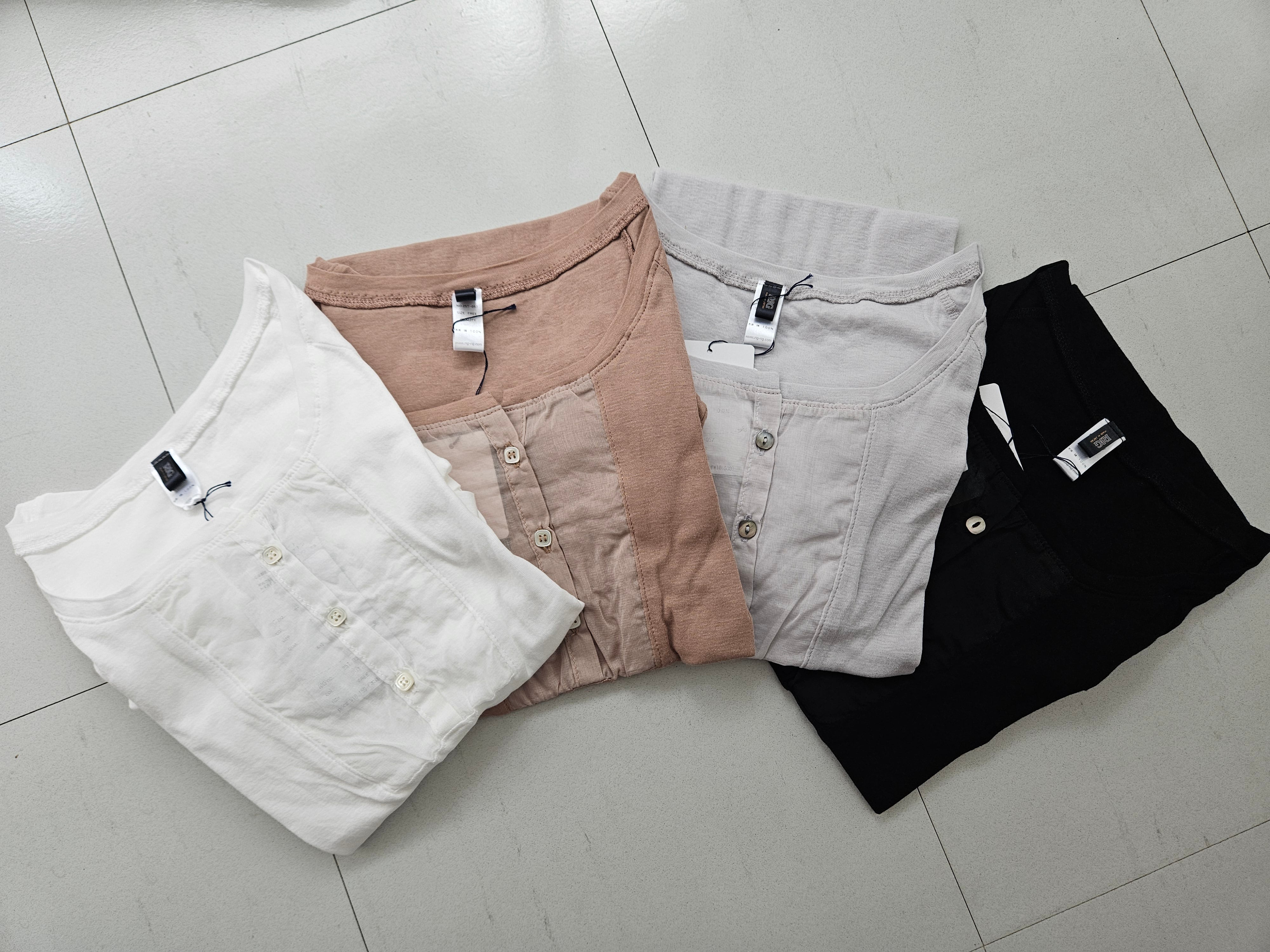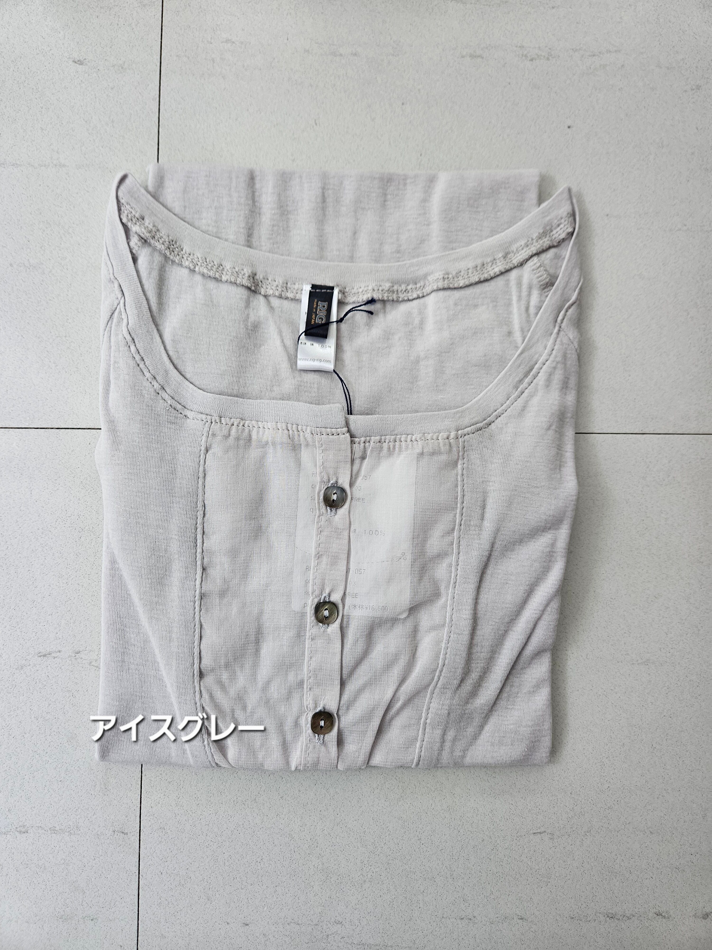 オーガニックアルティメイトピマコットンのヘンリーネック長袖Tシャツ。