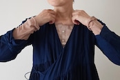 衿ぐりのあきが絶妙で今の季節はVネックのニットやシャツなどに合わせるのもオススメです